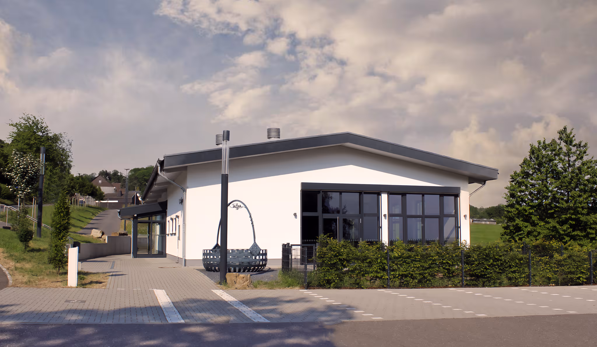 Neubau eines Dorfgemeinschaftshauses in moderner Holzrahmenbauweise für die Ortsgemeinde Schenkelberg. Funktionales, lichtdurchflutetes Raumkonzept mit multifunktionaler Nutzung und hoher Aufenthaltsqualität.