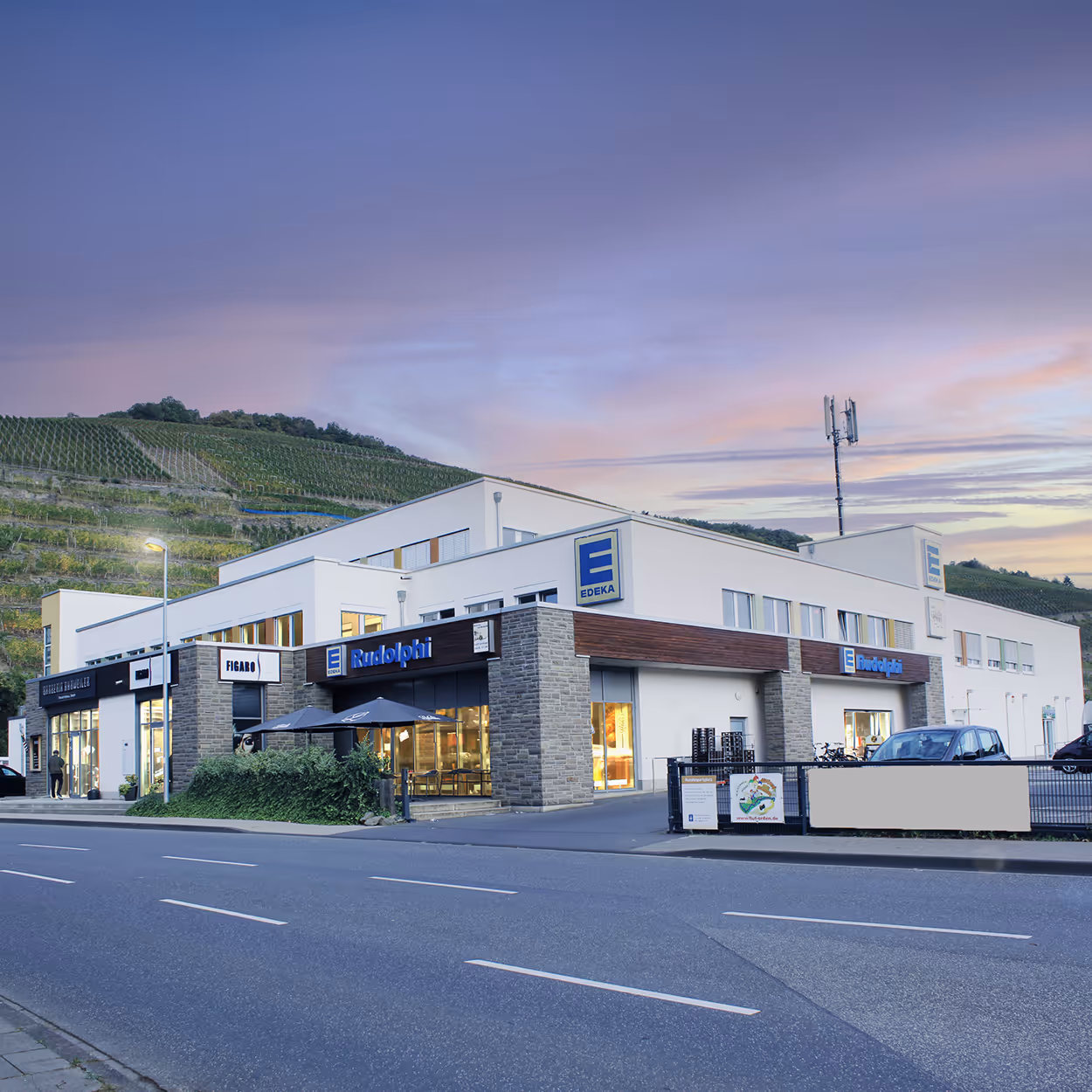 Umnutzung und Erweiterung eines Bestandsgebäudes mit Anbau, Teilabriss und Ausbau zu einem EDEKA-Markt über zwei Etagen mit Backshop, Fitnessstudio, Wohneinheit und vorbereiteter Möbelmanufaktur am Standort Bad Neuenahr-Ahrweiler.